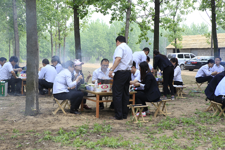 中午12時,在泰盛恒農場,鴻豐園林公司總經理李曉磊向大家介紹了農場的基本情況。公司員工參觀完農場的綠色有機蔬菜大棚后,自助燒烤正式開始。大家一起動手,將綠色有機的豐盛食材,洗凈、切開,串好。一會兒,樹林里升起了裊裊的炊煙,傳出了歡樂的歌謠,舌尖上的美味也讓員工大飽口福。下午14時,大家來到臨沂應用科學城,在華鵬集團總經理蔡圣文的帶領下,參觀了山東津蘭特種聚合物有限公司項目以及應用科學城。
