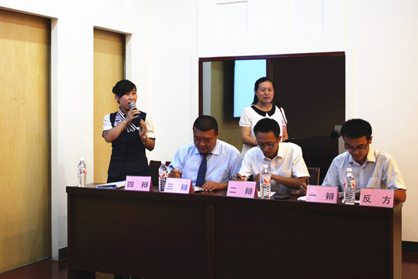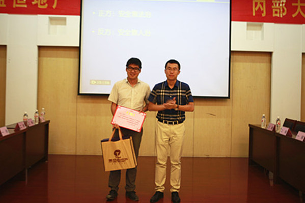 比賽采取自由選號確認對決雙方、現場抽簽選擇辯題的形式,共分陳詞、攻辯、自由辯論和總結陳詞4個階段。第一組上場的是由華城項目部、營銷管理部、奧晟物業組成的正方與由舒格蘭項目部、開發管理部、運營管理部、人力行政部組成的反方對決。雙方圍繞“安全技能和安全意識哪個更重要”展開激烈的辯論。