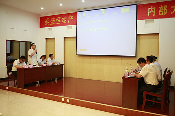 6月24日晚19時,泰盛恒地產“加強安全法治,保障安全生產”辯論賽在公司六樓會議室舉行。由各部門、各單位共同組成的4個小組參賽,地產公司全員、啟翔公司全員、物業公司主管以上人員觀看了辯論賽。