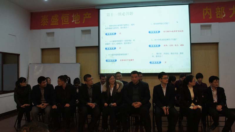 知識競賽分為個人必答題、主觀題、搶答題、風險題四個答題環節,綜合考察了參賽選手們的基礎知識、臨場應變能力、團隊合作精神。經過三輪激烈角逐,最終財務管理部、金泰華府、營銷管理中心三支代表隊進入最終對決。
