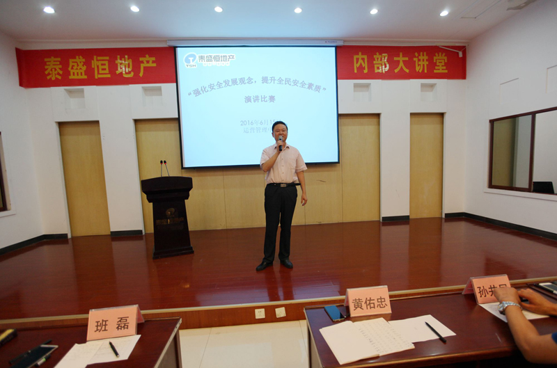 隱患險(xiǎn)于明火,防范勝于救災(zāi),責(zé)任重于泰山。2016年6月15日,由運(yùn)營管理中心組織泰盛恒地產(chǎn)、中匯地產(chǎn)、啟翔代理公司、港信裝飾公司、鴻豐園林公司全員及奧晟物業(yè)主管以上人員在六樓會(huì)議室舉行以“強(qiáng)化安全發(fā)展觀念,提升全民安全素質(zhì)”為主題的演講比賽。來自各個(gè)中心、部門及分子公司的14名選手參加了本次演講比賽。