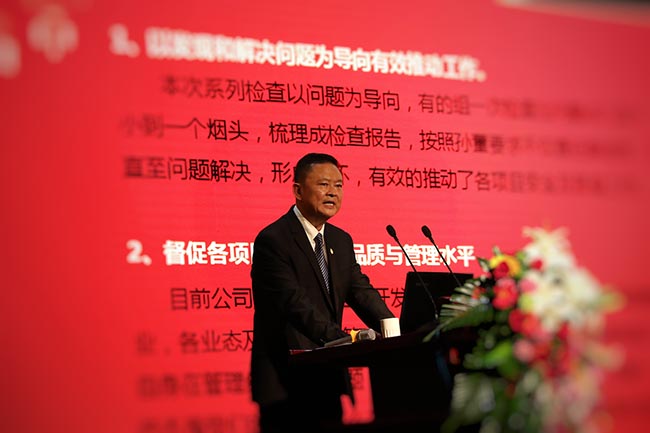 隨后,公司總經理黃佑忠代表公司向大會作項目周檢查及2018年前三季度工作總結報告。周檢查總結報告指出了檢查活動有效地推動了各項目安全及質量提升,督促各項目提高了工作品質與管理水平,提升了公司員工協作能力與品質意識。年度工作總結報告從2018年關鍵指標達成情況和2018年經營亮點兩個方面全面總結了公司取得的發展成績,強調了第四季度的工作重點任務。